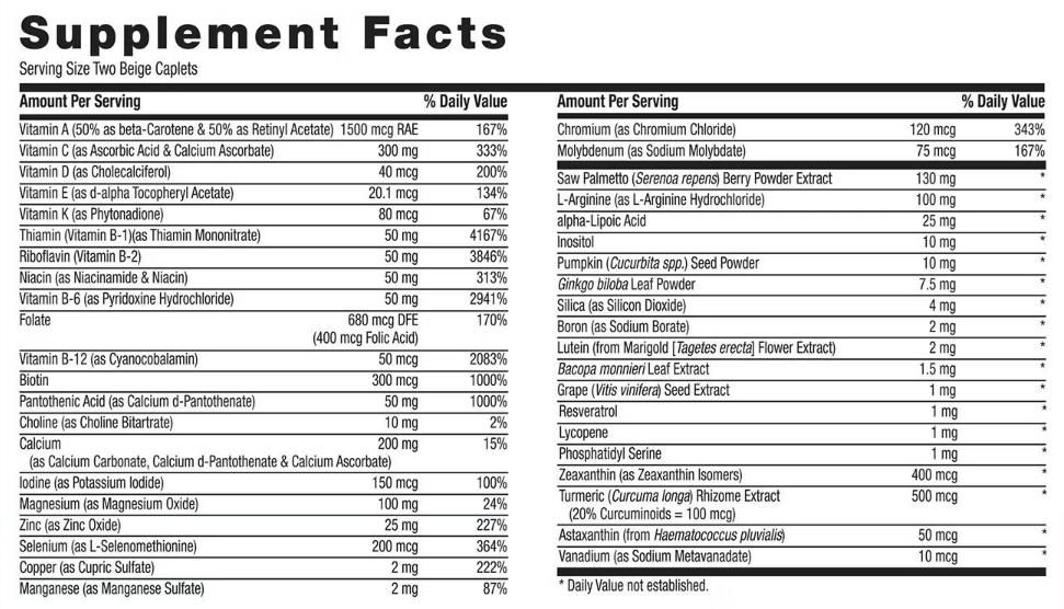 한 팩당 종합비타민, 오메가3, 코큐텐, 쏘파메토, 징코빌로바 등