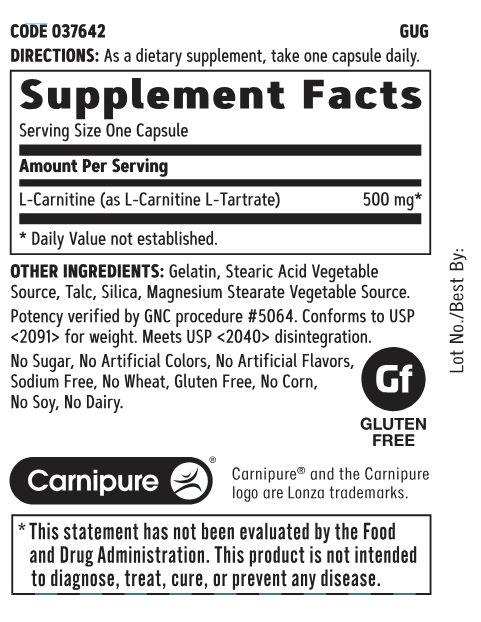 GNC L-카르니틴은 체내 에너지 대사에 관여하는 아미노산 유도체인 L-카르니틴을 함유한 건강보조식품