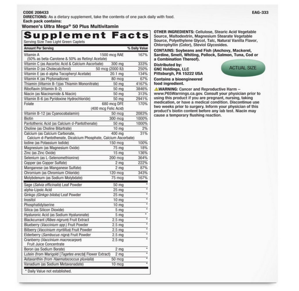 여성용 울트라 메가 50+ -종합비타민